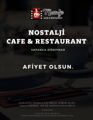 NOSTALJİ CAFE & RESTAURANT SAPANCA KIRKPINAR AFİYET OLSUN. SOĞUKSU MAHALLESİ MELİH KİBAR SAHİL YOLU CADDESİ NO: 55 SAPANCA/SAKARYA TELEFON: 0535 466 80 54 WWW. KİRKPİNARNOSTALJİCAFERESTAURANT. COM